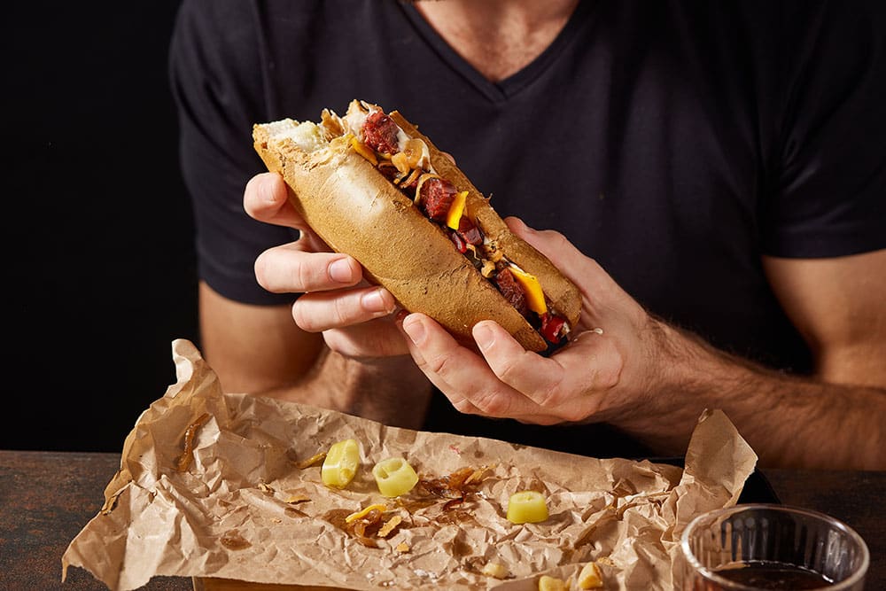 5 zachte lange broodjes (wit, stokbrood of andere soort)